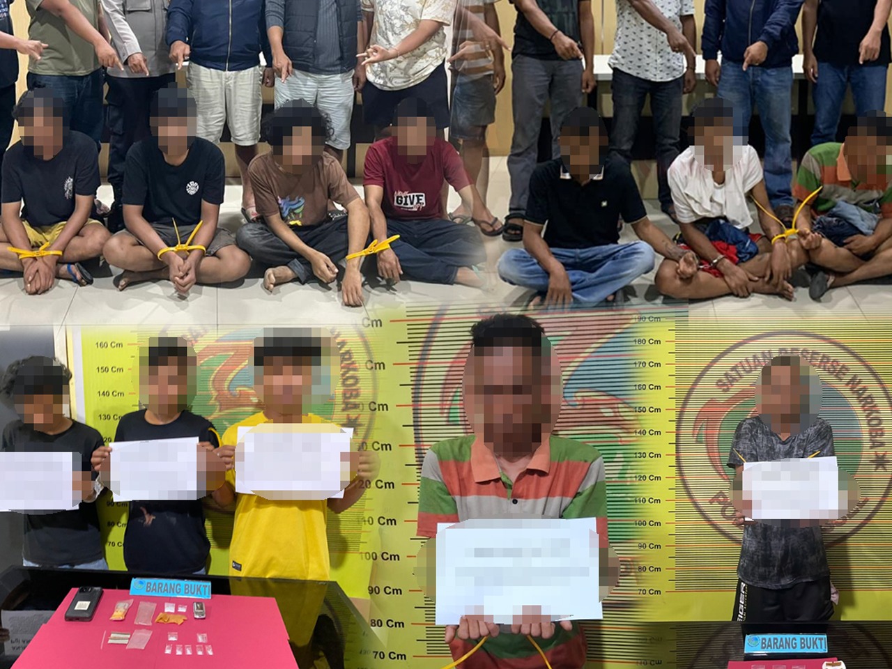 Dari serangkaian penangkapan dan penggerebekan yang dilakukan, petugas berhasil menyita barang bukti narkotika jenis sabu dengan total berat kurang lebih 42,28 gram dan ganja kering seberat 0,37 gram. Barang bukti tersebut ditemukan dalam berbagai kemasan, baik paket sedang maupun kecil, yang diduga siap edar.