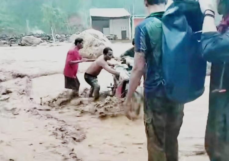 “Air mengalir sangat deras dan membawa kayu,” bebernya.