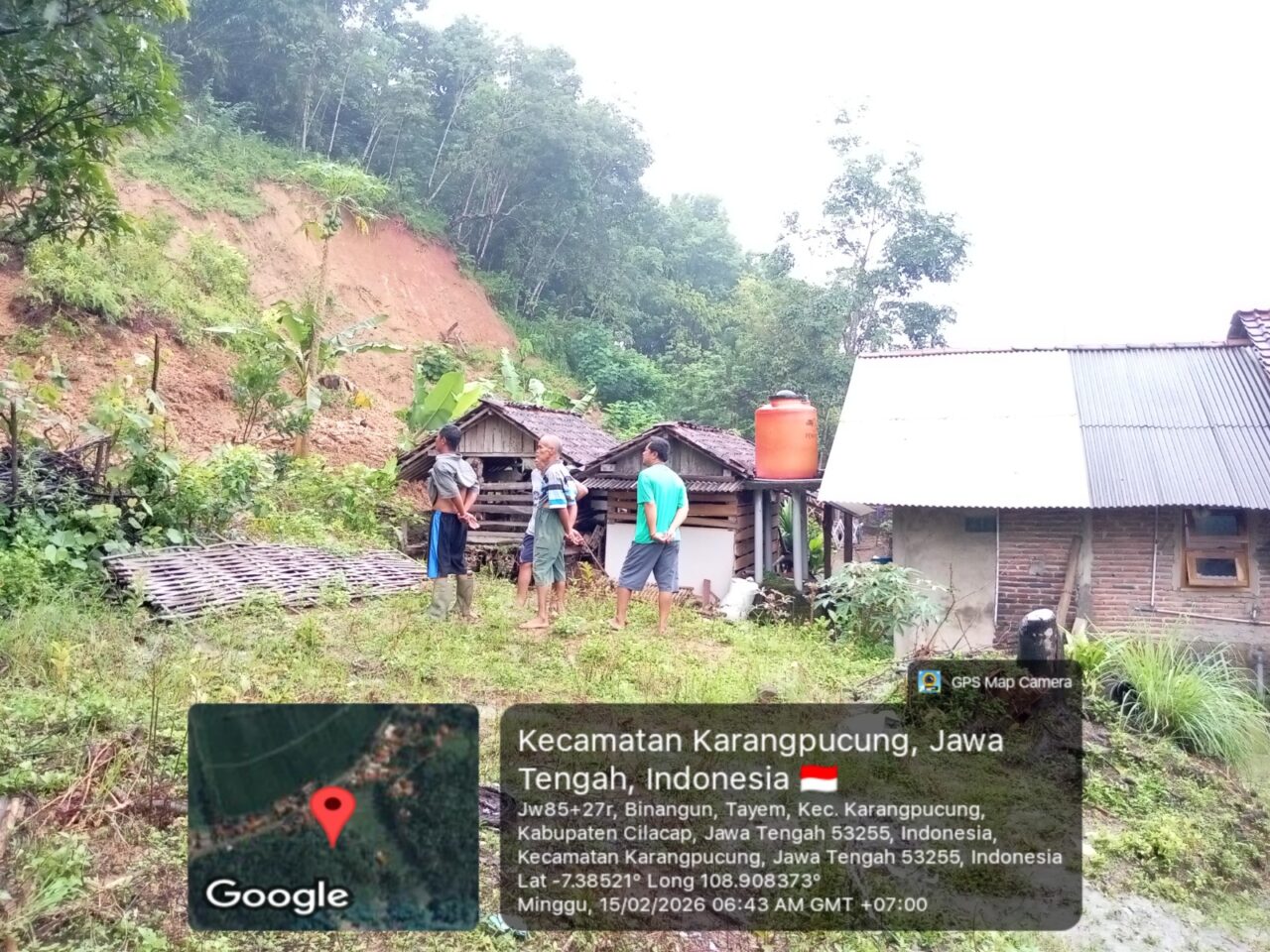 Badan Penanggulangan Bencana Daerah (BPBD) Kabupaten Cilacap segera melakukan kaji cepat di lokasi terdampak untuk melakukan penanganan darurat. Data terkini per hari Minggu (15/2) dilaporkan petugas bersama warga setempat bergotong royong memperbaiki rumah yang terdampak dan membuat turap yang terbuat dari tanah.