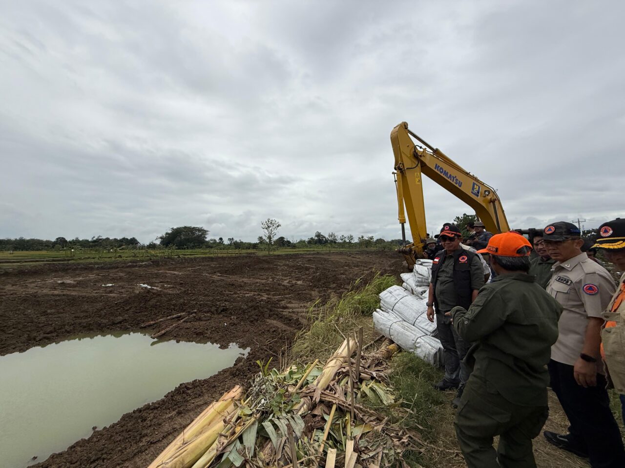 Setelah kemarin berdialog dengan penyintas bencana tanah bergerak di Kabupaten Tegal, kali ini Kepala BNPB berdialog dengan pemerintah daerah setempat dan meninjau progres perbaikan tanggul jebol di Desa Tinanding, Kecamatan Kebonagung Kabupaten Grobogan, Provinsi Jawa Tengah, pada Jumat (20/2).