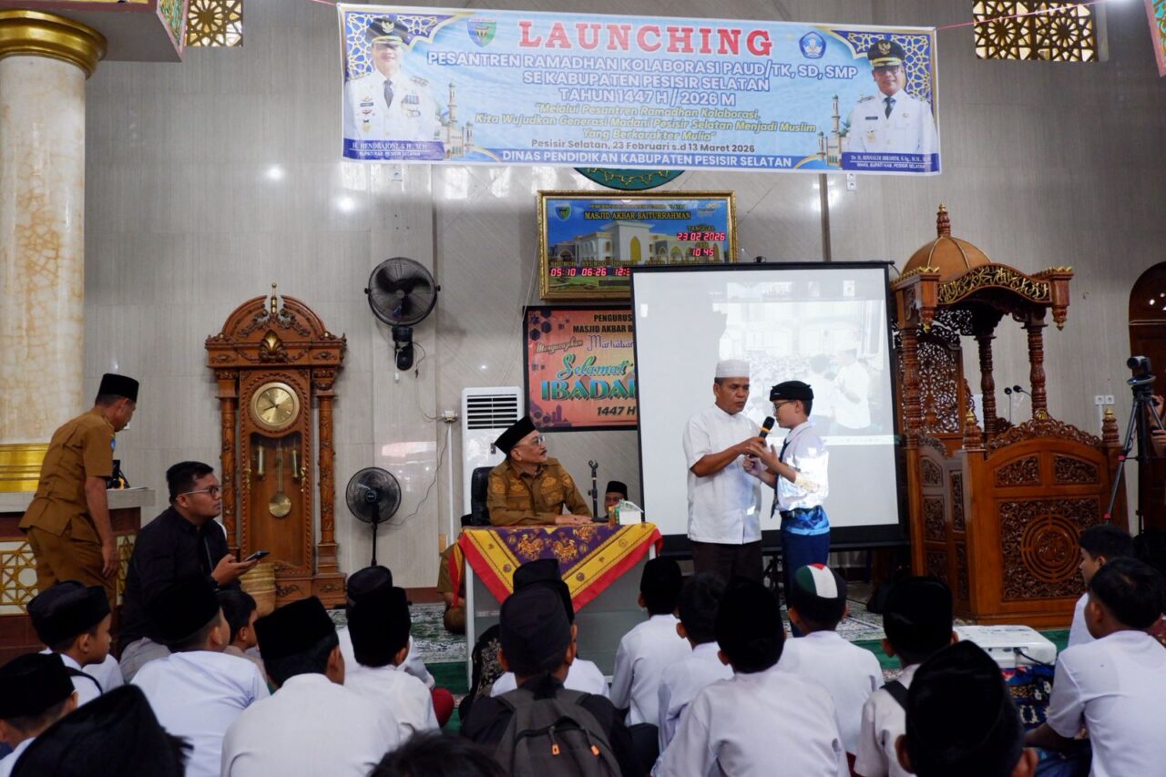PESISIR SELATAN, HARIANHALUAN.ID- Pemerintah Kabupaten Pesisir Selatan (Pemkab Pessel) resmi memulai Program Pesantren Ramadan Kolaborasi 1447 Hijriah/2026 Masehi sebagai langkah strategis memperkuat pendidikan karakter berbasis keagamaan di kalangan pelajar.