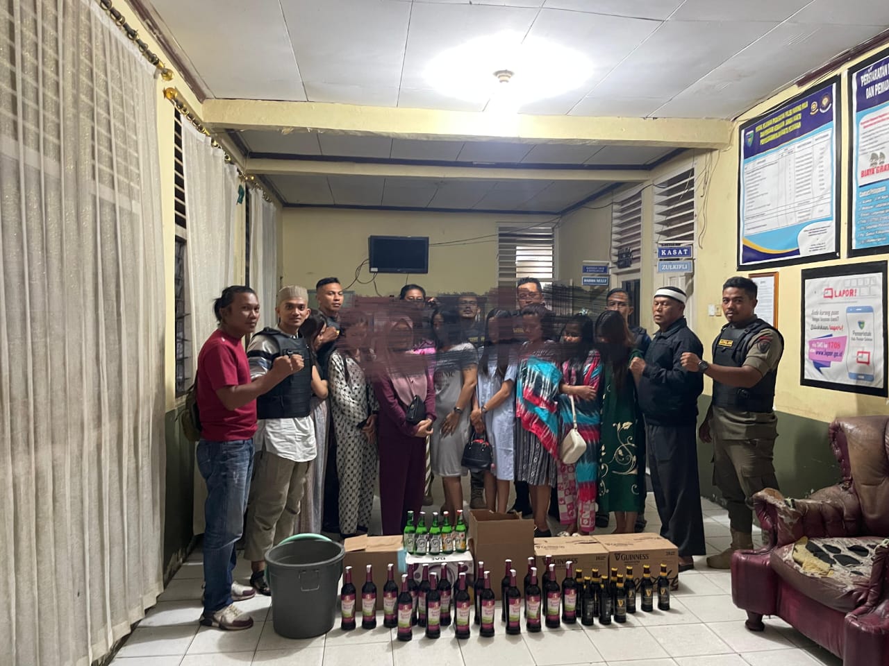 Petugas kemudian mengamankan delapan perempuan yang bekerja sebagai pemandu karaoke, serta pemilik tempat hiburan tersebut. Selain itu, sejumlah barang bukti berupa minuman keras dalam kemasan botol dan tuak turut disita dari lokasi.