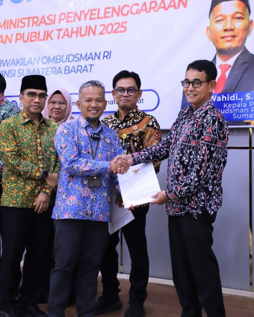 PADANG PARIAMAN, HARIANHALUAN.ID – Kantor Pertanahan Kabupaten Padang Pariaman menerima Hasil Penilaian Maladministrasi Tahun 2025 dari Ombudsman Republik Indonesia di aula Rumah Gadang Kantor Wilayah BPN Sumatera Barat, Padang, Kamis, (19/2/2026)