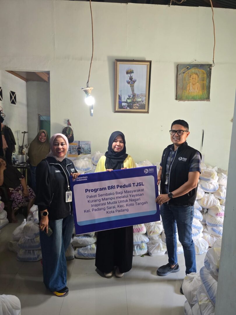 Melalui Program BRI Peduli Tanggung Jawab Sosial dan Lingkungan (TJSL), BRI BO Padang menyalurkan bantuan paket sembako kepada masyarakat kurang mampu bekerja sama dengan Yayasan Inspirasi Muda Anak Nagari, Rabu (5/2) lalu.