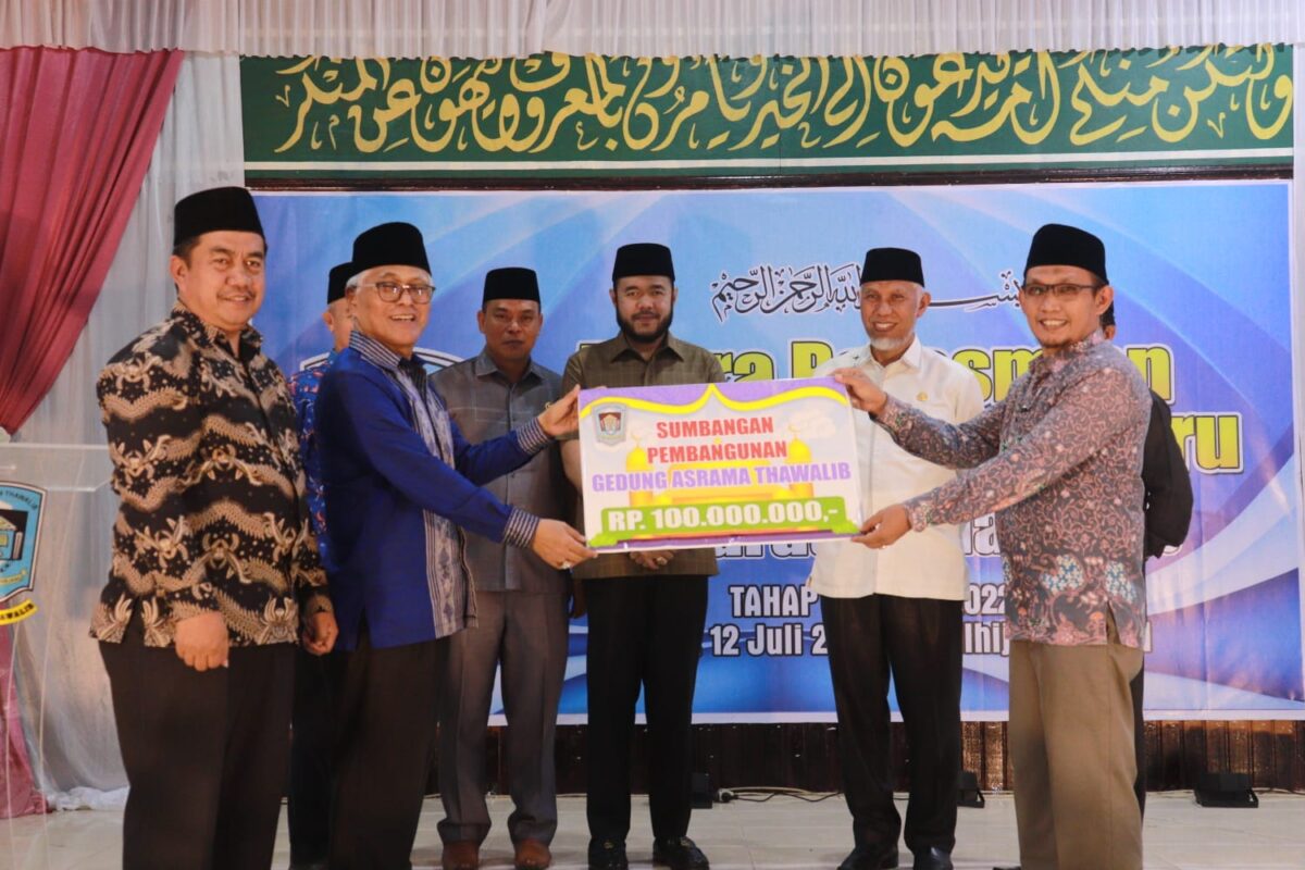 Sementara anggota DPR RI asal Sumatera Barat H Guspardi Gaus menyerahkan sumbangan untuk kelanjutan pembangunan gedung asrama tersebut sebesar Rp 100 juta. Penyerahan sumbangan langsung diserahkan kepada Ketua Umum Yayasan Thawalib Abrar yang disaksikan langsung oleh Gubernur Mahyeldi Ansharullah, Walikota Padang Panjang Fadly Amran, Ketua DPRD Padang Panjang Mardiansyah, Kepala Kementerian Agama Padang Panjang Alizar Chan dan jajaran pengawas dan pengurus yayasan.