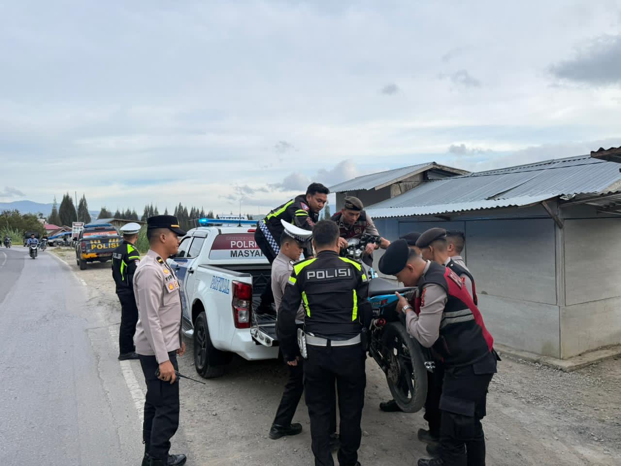 Patroli melibatkan personel gabungan dari Polsek Lembah Gumanti, Satlantas, dan Sat Samapta Polres Solok. Kegiatan dilakukan secara mobile dengan fokus pemantauan arus lalu lintas serta pencegahan balap liar di titik-titik rawan. Pada patroli tersebut, setidaknya dua unit sepeda motor berhasil diamankan petugas, kerana tidak memiliki kelengkapan kendaraan.