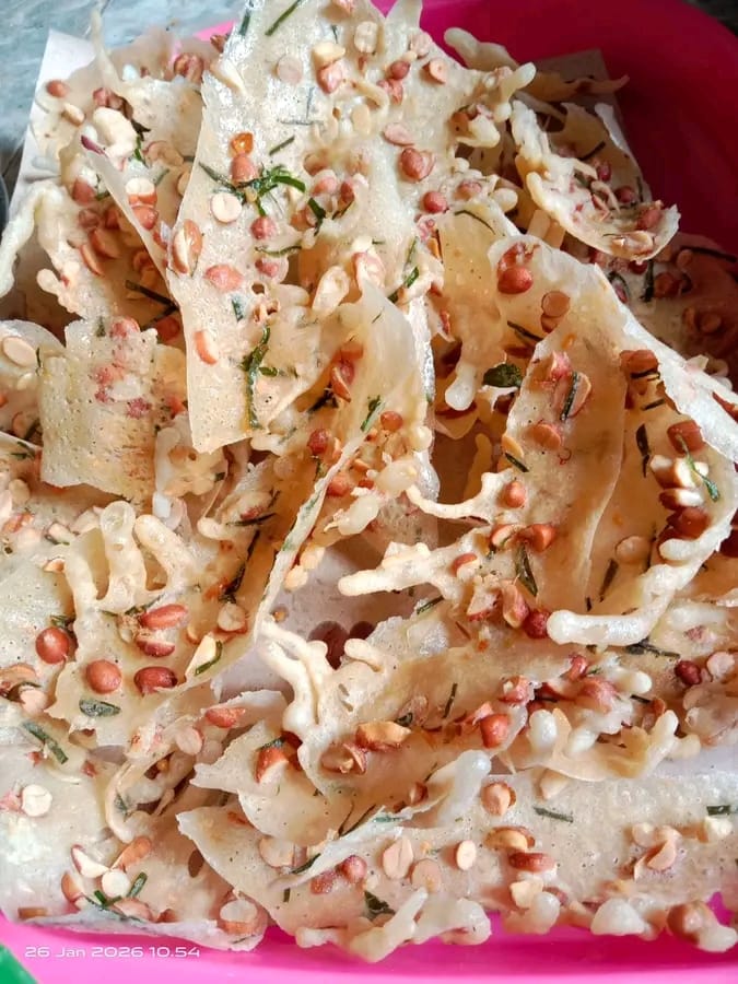4️⃣ Goreng tipis di minyak panas sampai renyah. (*)