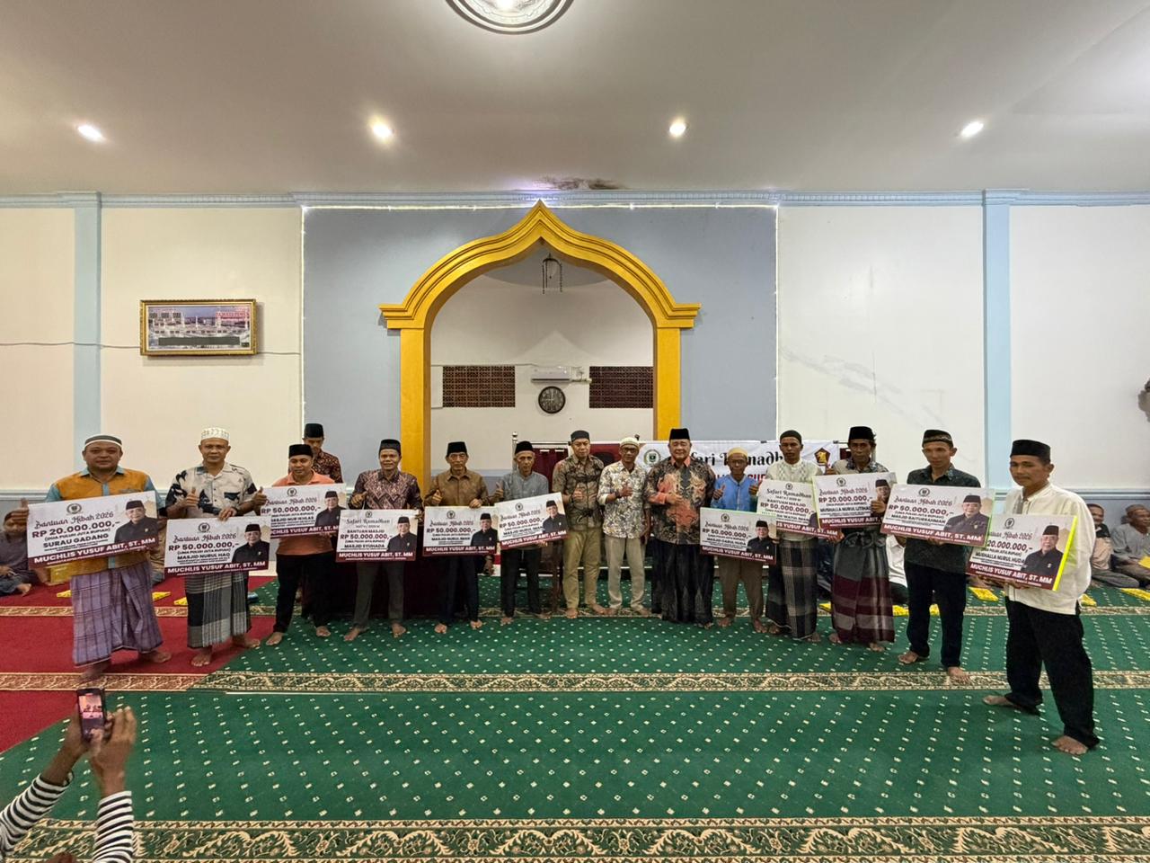 PESSEL, HARIANHALUAN.ID — Anggota Komisi III DPRD Provinsi Sumatera Barat, Muchlis Yusuf Abit, melaksanakan Safari Ramadan di daerah pemilihannya di Kabupaten Pesisir Selatan (Pessel) dengan menyalurkan bantuan sebesar Rp460 juta untuk 8 masjid dan 3 musala.