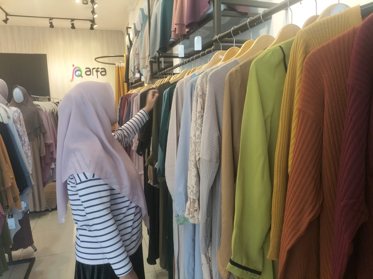 Salah seorang penjaga toko, Tia Radewi mengaku tidak terlalu mengikuti tren busana yang bersifat musiman. Mereka lebih memilih menyediakan produk dengan warna-warna yang cenderung netral dan lembut agar tetap bisa digunakan setelah Lebaran.