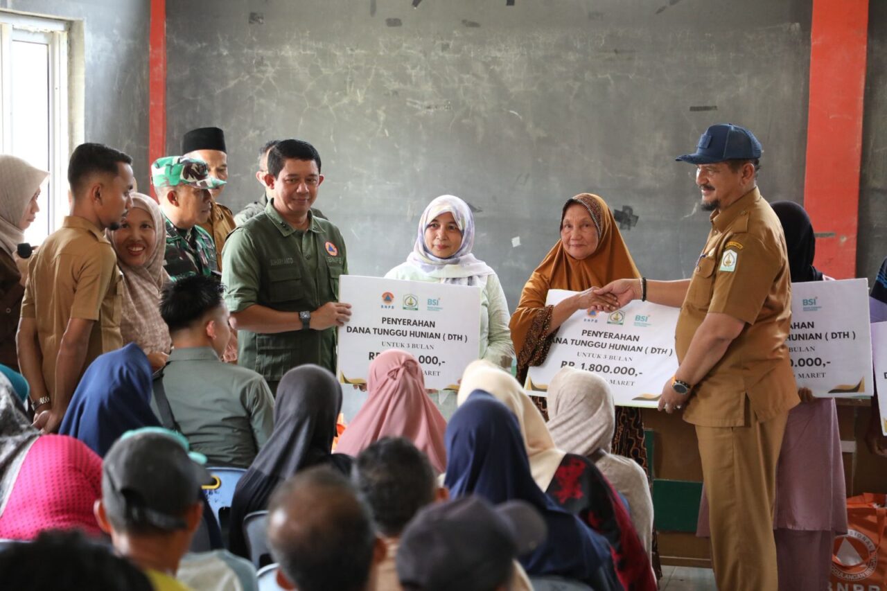 ACEH TAMIANG, HARIANHALUAN.ID – BNPB menyalurkan bantuan dana tunggu hunian atau DTH kepada 259 kepala keluarga (KK) korban bencana banjir akhir November 2025 lalu. Mereka merupakan warga dari Kecamatan Rantau, Kabupaten Aceh Tamiang, Provinsi Aceh. Penyerahan simbolis berlangsung di Kantor Kecamatan Rantau pada Selasa (10/3).
