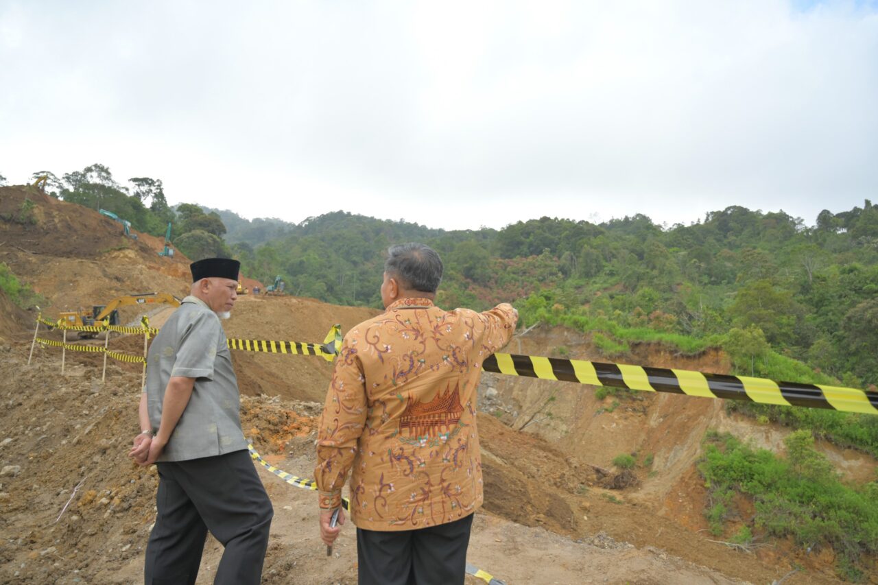 Gubernur Sumbar, Mahyeldi Ansharullah dan Bupati Agam, Benni Warlis meninjau progress perbaikan jalur Malalak, beberapa waktu lalu. BPJN Sumbar menyatakan, jalur alternatif yang menghubungkan Kota Padang dengan Kota Bukittinggi tersebut belum bisa digunakan untuk momen mudik Lebaran tahun ini. IST