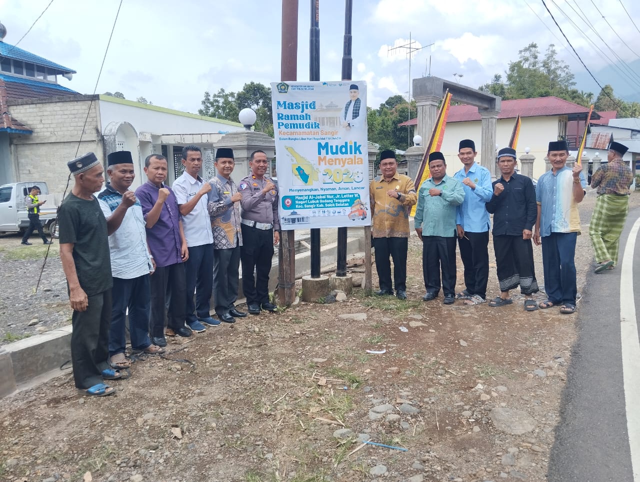 Program dengan semboyan Mudik Menyala 2026.(Menyenangkan, Nyaman, Aman, Lancar)  di-lounching di Masjid AlJabar  Nur, Jr. Letter W Nagari Lubuak Gadang Tenggara Kecamatan Sangir, Rabu (11/3/26).