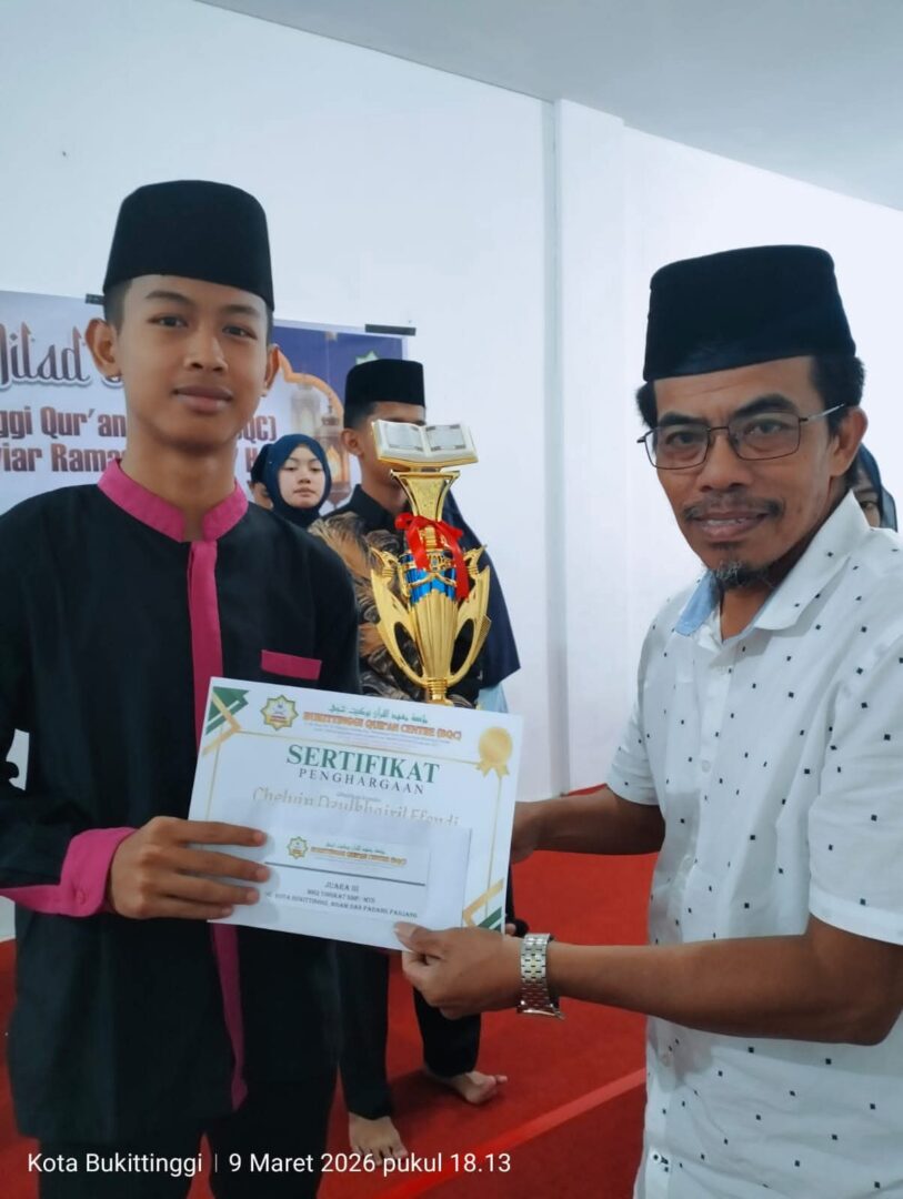 HARIANHALUAN. ID – Siswa Madrasah Tsanawiyah Negeri (MTsN) 1 Bukittinggi berhasil meaih prestasi pada MTQ Bukittinggi Qur’an Centre (BQC) yang dilaksanakan Sabtu hingga Senin, 8 – 9 Maret 2026.