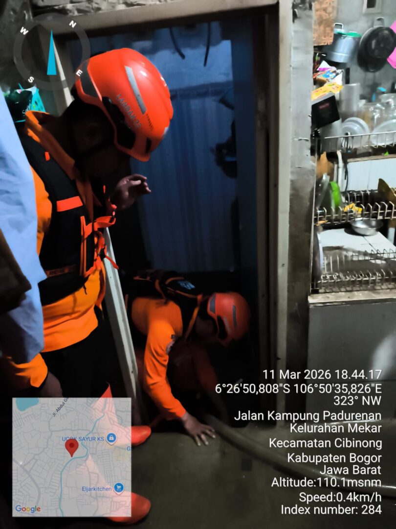 BPBD Kabupaten Bogor melakukan penyedotan pembersihan material lumpur yang tertahan di rumah warga pascabanjir di Kecamatan Cibinong pada Rabu (11/3). Sumber foto: BPBD Kabupaten Bogor.