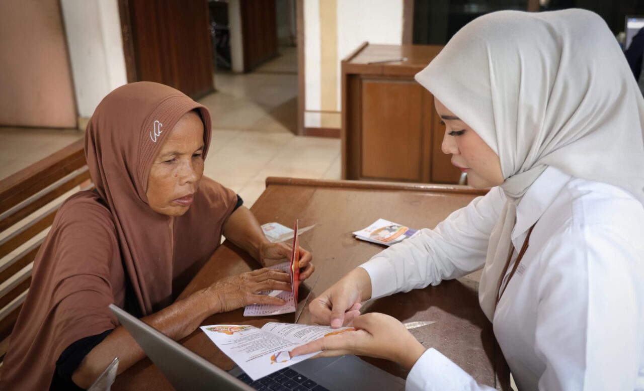 Salah satu nasabah yang dibayarkan dananya adalah Yuda Sukarna, seorang Ibu dan pedagang sembako di Pasar Modern Sungai Rumbai, Kab. Dharmasraya.