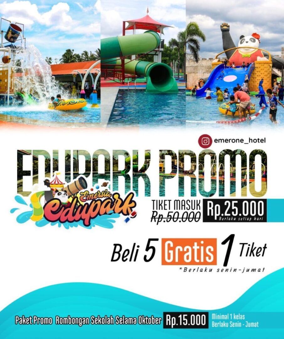 Dalam promo ini manajemen menyediakan tiket dengan harga yang cukup murah dengan potongan harga 50% yang biasanya tiket masuk wahana itu 50.000 rupiah sekarang hanya 25.000 rupiah sudah bisa masuk ke wahana Edupark Emerone hotel.