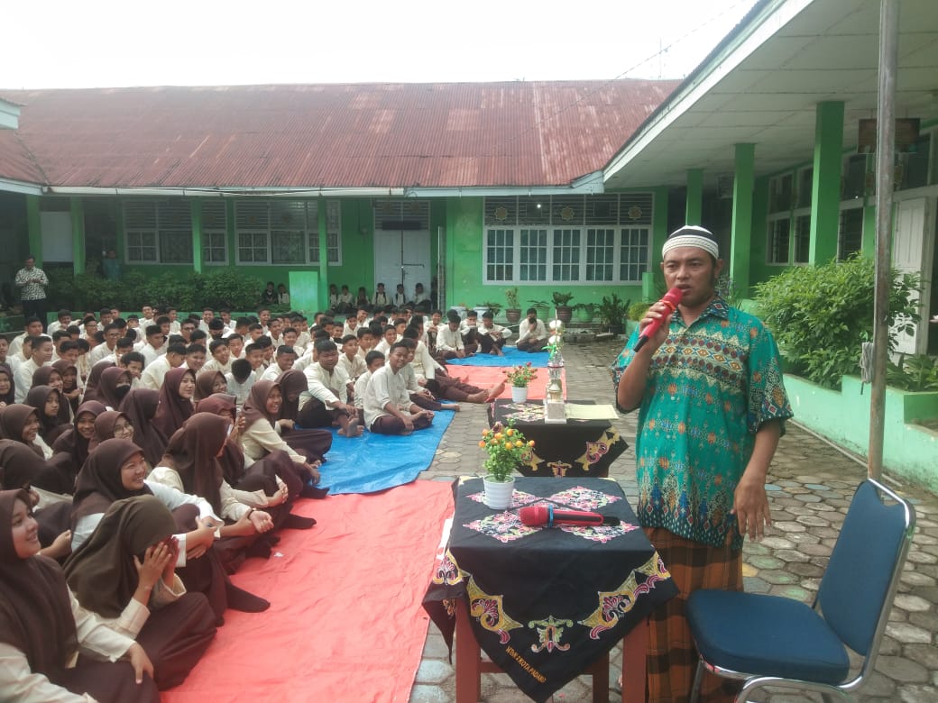 Hadir dalam kesempatan itu, Kepala MTsN 2 Padang Zulfadhli Alfa, para wakil kepala, majelis guru, pegawai dan peserta didik dengan duduk bersila beralaskan tikar plastik dalam cuaca nan sejuk.