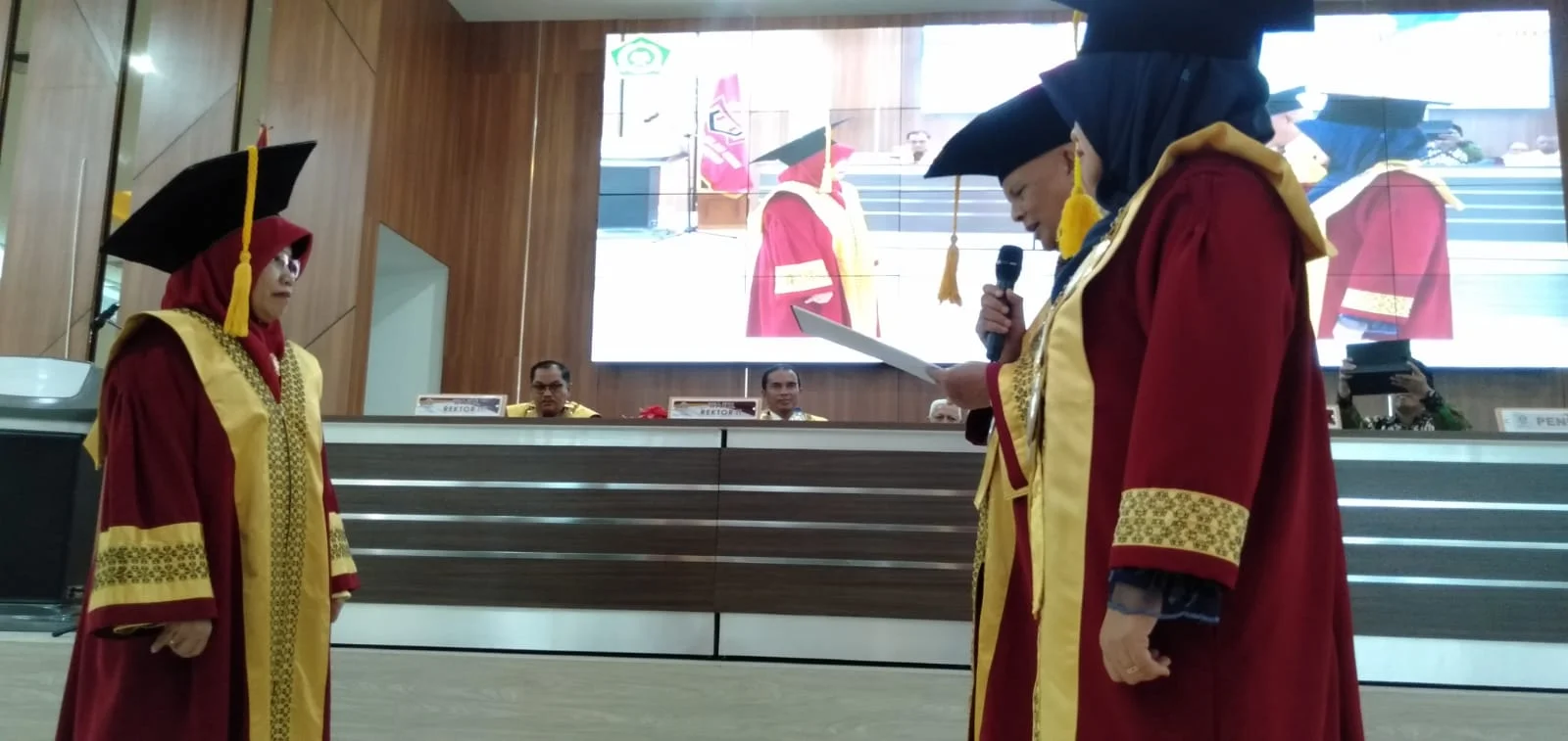 Pada kesempatan itu, Prof. Dr. Hetti Waluati Triana, M.Pd, Ph.D menyampaikan orasi ilmiah yang berjudul berjudul “Imperialisme Linguistik dan Indentitas Budaya Minangkabau”.