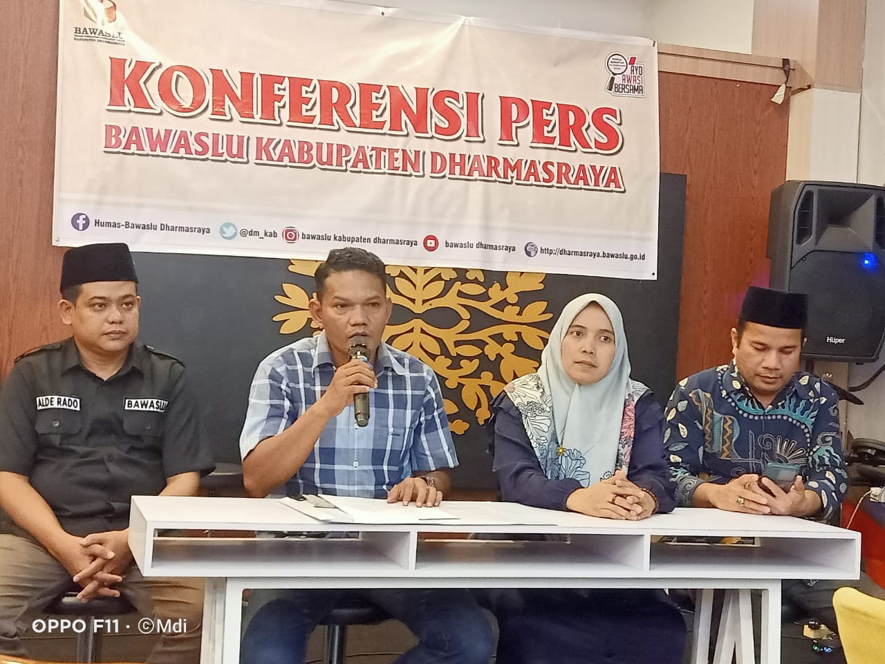 Bawaslu Dharmasraya menggelar jumpa pers menyampaikan temuannya selama Coklit berlangsung. Maryadi