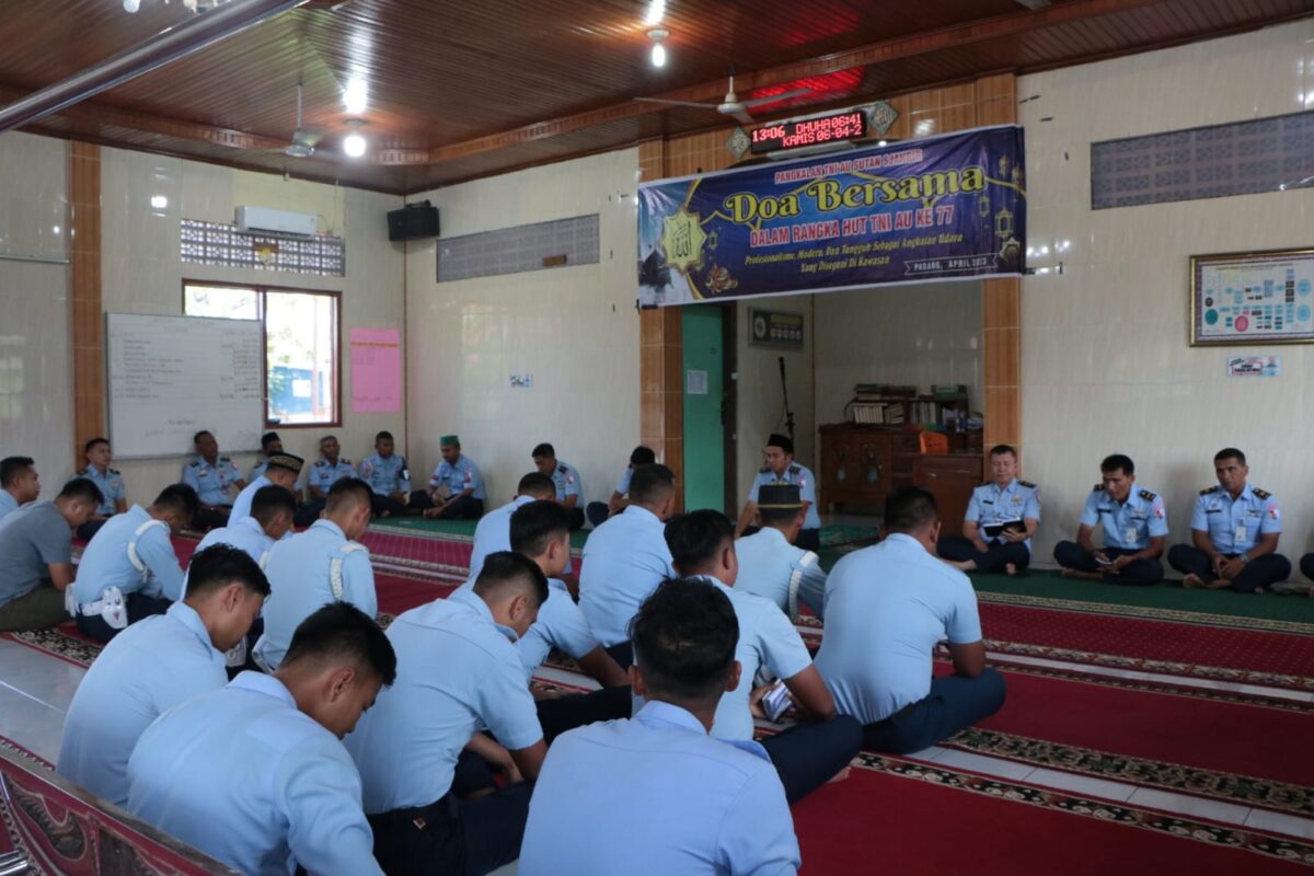 PADANG, HARIANHALUAN.ID – Personel Lanud Sutan Sjahrir (Sut), melaksanakan doa bersama dalam rangka peringatan Hari Ulang Tahun ke-77 TNI Angkatan Udara di masjid sedangkan yang beragama Nasrani melaksanakan ibadah di ruang rapat Mako Lanud Sut, Padang, Sumatera Barat, Kamis (6/4).