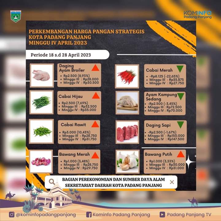 Secara keseluruhan, tambahnya, harga pangan strategis terkendali di Kota Padang Panjang selama Idulfitri. Ini adalah berkat kerja sama semua pihak. Baik itu distributor, pedagang, dan masyarakat yang beraktivitas sesuai dengan ketentuan. Pihak-pihak lain yang mendukung, yaitu Bulog Cabang Bukittinggi, koperasi dan perbankan se-Kota Padang Panjang, Baznas, para pengusaha, TTIC Sumbar.