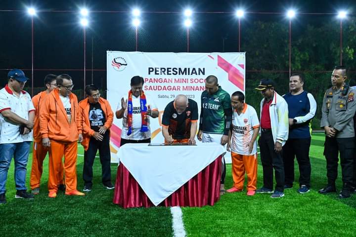 HARIANHALUAN.ID – Gubernur Sumatera Barat Mahyeldi Ansharullah meresmikan lapangan Mini Soccer Saudagar Minang (MSSM) yang berlokasi di Gor H. Agus Salim, Kota Padang, Sabtu (29/4/2023). Lapangan MSSM tersebut dibangun dari investasi Koperasi Saudagar Minang Raya (KSMR).