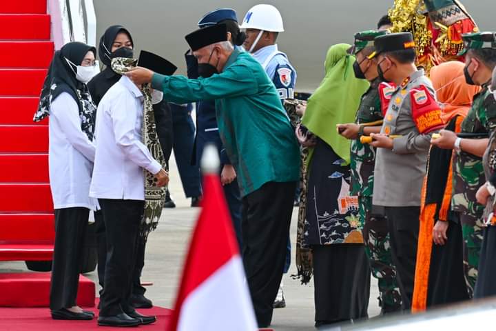 Selain Gubernur Mahyeldi juga tampak hadir menyambut rombongan Wapres RI, Ibu Harneli Mahyeldi, Pangdam I/Bukit Barisan, Kapolda Sumbar, Danlanud Sultan Sjahrir dan Danlantamal II Padang didampingi istri masing-masing.