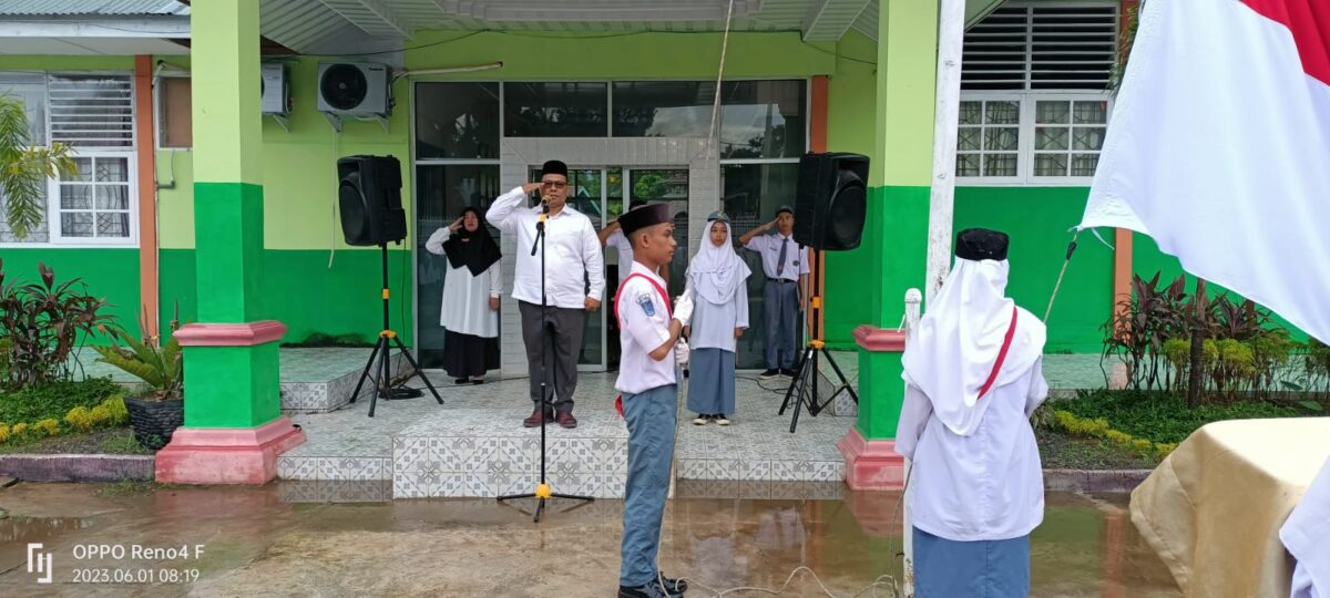 HARIANHALUAN. ID – Madrasah Aliyah Negeri (MAN) 3 Padang melaksanakan upacara bendera memperingati hari lahir Pancasila di lapangan madrasah tersebut Kamis (1/6/23).