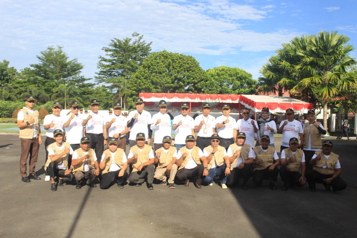 Bupati Hamsuardi dan Wakil Bupati Risnawanto foto bersama dengan OPD dan wali nagari dalam kegiatan deklarasi penyelamatan aset negara. Osniwati