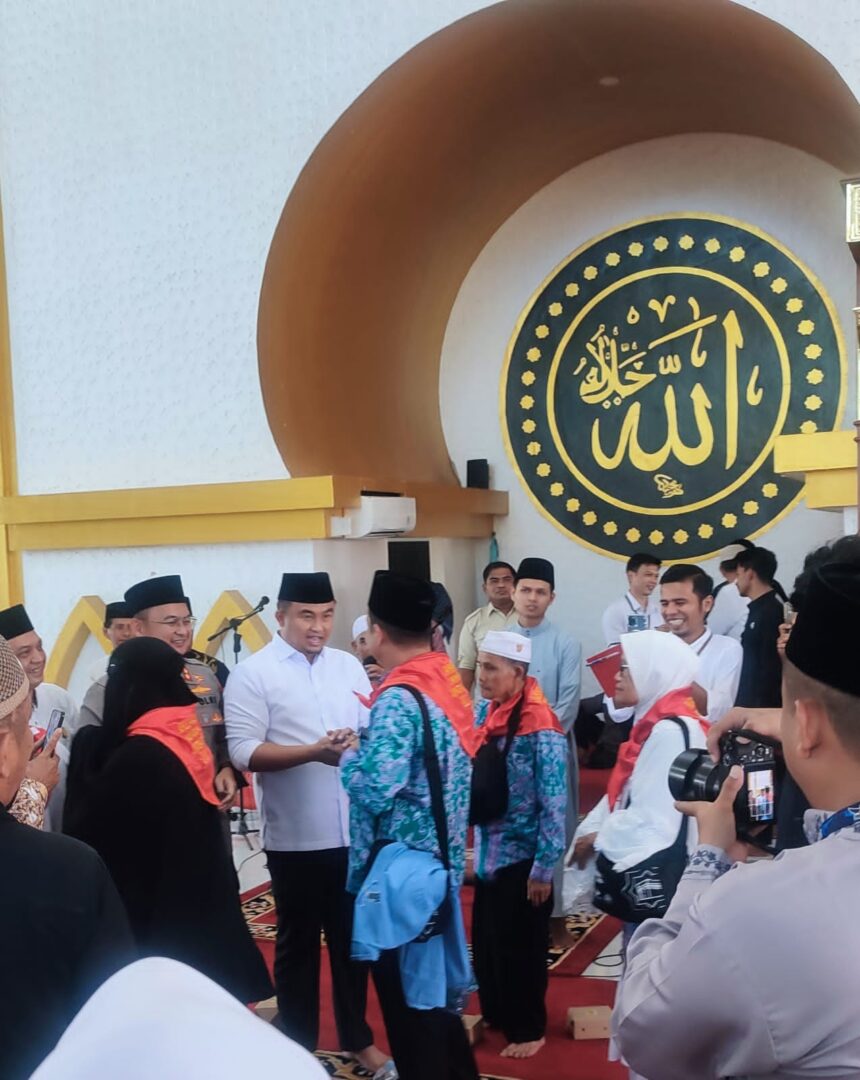 HARIANHALUAN. ID – Bupati Dharmasraya Sutan Riska Tuanku Kerajaan melepas keberangkatan 227 orang jemagh calon haji (JCH) di Masjid Agung Islamic Centre Dharmasraya, Jumat (16/6/23). Satu diantaranya adalah anggota PWI Kabupaten Dharmasraya Habibi.