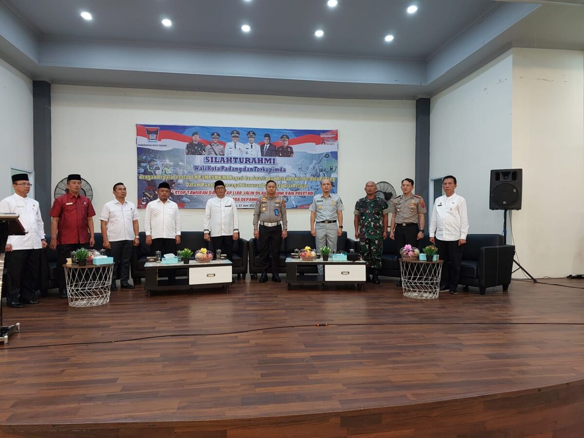 HARIANHALUAN.ID – Wali Kota Padang dan ForkoPimda Kota Padang adakan kegiatan silaturahmi dengan dengan Kepala Sekolah SMP dan SMA/SMK Negeri dan Swasta pada Jumat (23/6). Tema kegiatan ini adalah ‘Stop Tawuran dan Balap Liar Jalin Silaturahmi Raih Prestasi Untuk Masa Depanmu Nanti’, yang dilaksanakan di Gedung Youth Center Kota Padang.