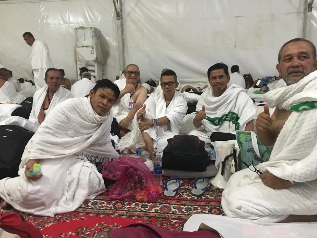 Semenjak sampai di Arafah dengan dipimpin Ketua Kloter Adri Ahmad dan Tenaga Kesehatan Dr Jeky Samuel, Ns. Yulianoveri dan Ns. Sutrisna Eka Putri serta dibantu PHD Andre Algamar, Edihasmi, Ketua Rombongan Erman, Asnel, Sondal satu persatu jamaah menempati tenda yang sudah disediakan beserta kasur.