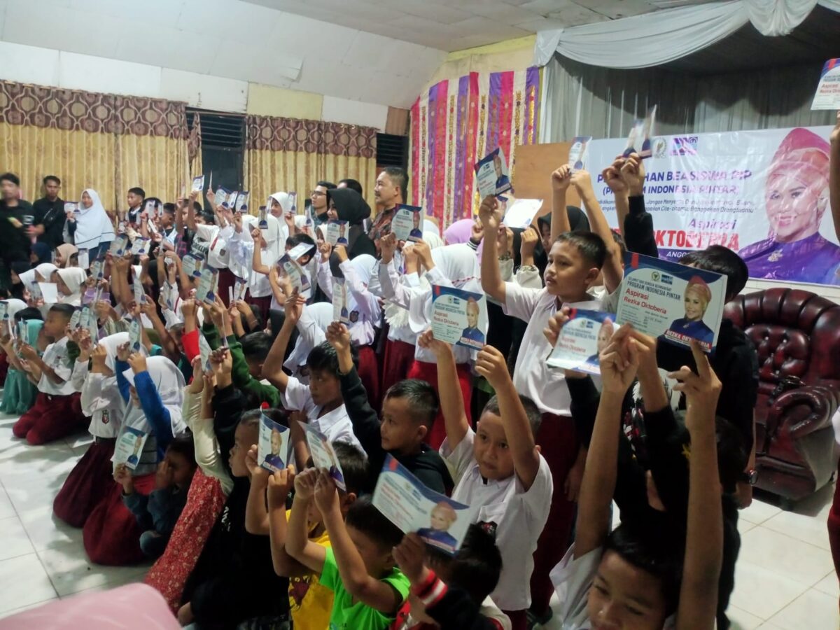 PASAMAN BARAT, HARIANHALUAN.ID — Ratusan siswa dan siswi Sekolah Dasar, Sekolah Menengah Pertama, dan Sekolah Menengah Atas menerima Beasiswa Program Indonesia Pintar (PIP) Aspirasi Rezka Oktoberia, Anggota DPR RI Fraksi Demokrat, di Gedung Pertemuan Simpang Pertanian, Padang Tujuh, Pasaman Barat, Senin (10/7).