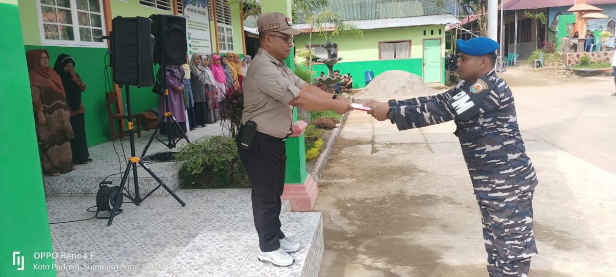 Instruktur POM Lantamal II mengembalikan siswa yang telah mengikuti Matsama diterima secara simbolis Kepala MAN 3 Padang Plus Keterampilan Afrizal.
