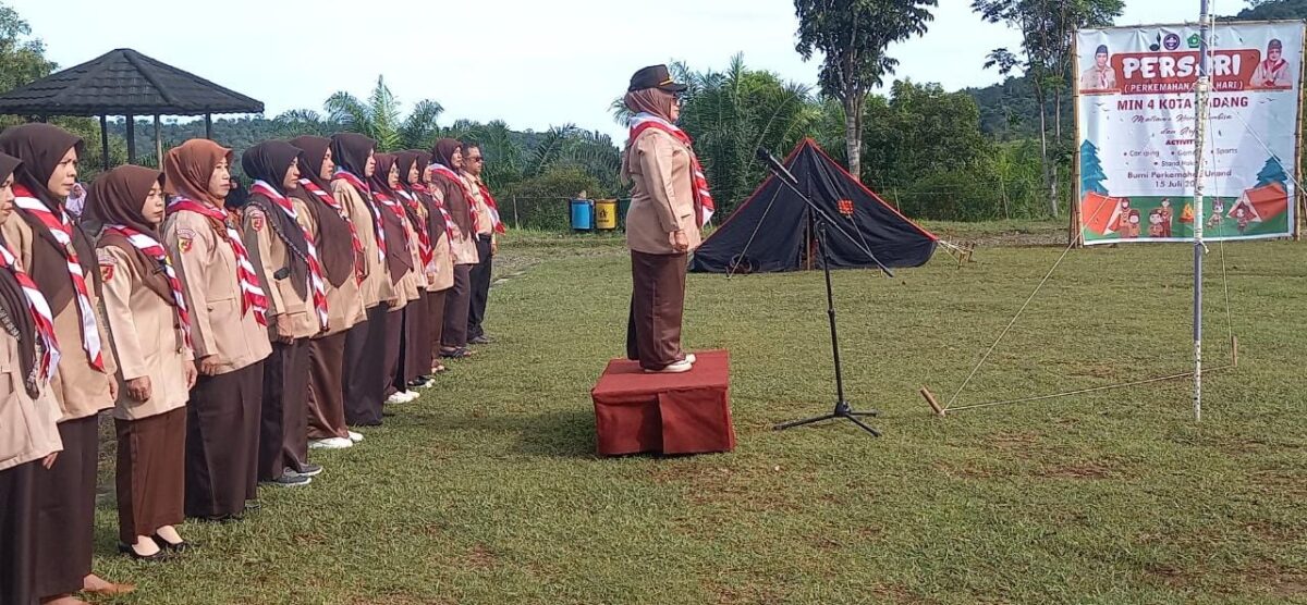 HARIAN HALUAN.ID- Pramuka Madrasah Ibtidaiyah Negeri (MIN) 4 Padang melaksanakan perkemahan satu hari (Persari) di bumi perkemahan (Buper) Universitas Andalas (Unand) Limau Manis Padang, Sabtu (15/07/23).