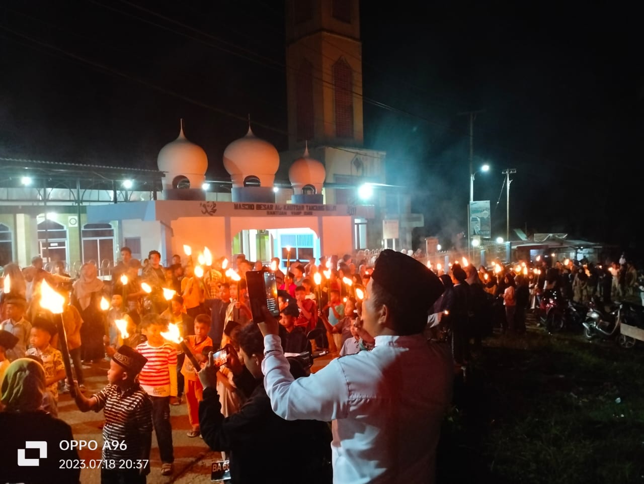 SOLOK, HARIANHALUAN.ID — Menyambut tahun baru Islam 1 Muharram 1445 H, Nagari Tanjung Balik Kecamatan X Koto Diatas Kabupaten Solok mengadakan serangkaian kegiatan yang diawali dengan Pawai Obor Keliling Nagari, Selasa (18/7) malam. Arak-arakan pawai dimulai dari depan Masjid Besar Al-Kautsar untuk selanjutnya berkeliling nagari.