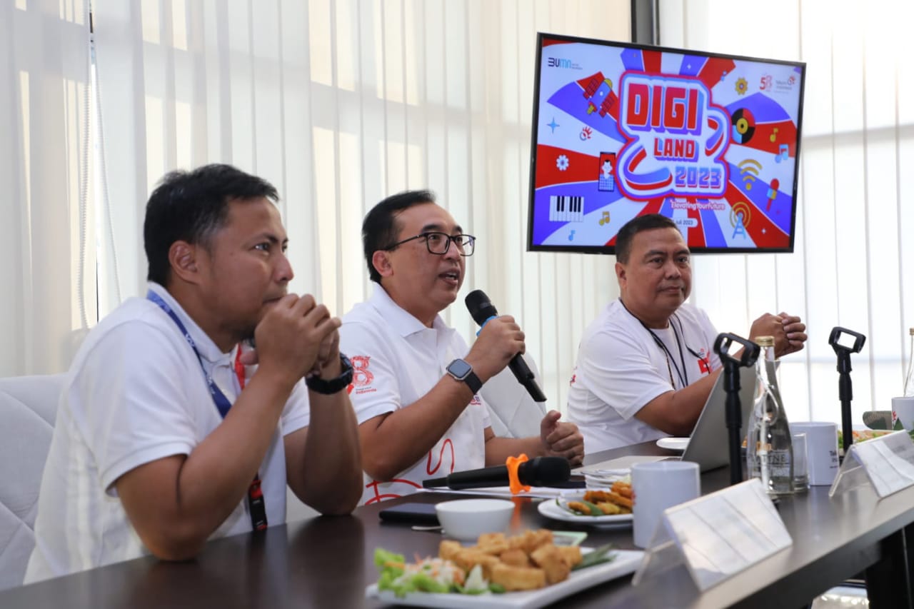 Vice President Corporate Communication Telkom Andri Herawan Sasoko menyampaikan, di tahun 2023 Digiland tak hanya hadir di Jakarta namun juga Surabaya. “Sebagai wujud terima kasih dan komitmen Telkom untuk selalu memberikan yang terbaik bagi masyarakat dan pelaku bisnis, Telkom menggelar Digiland 2023 di Surabaya. Acara ini dimeriahkan berbagai kegiatan yang sarat dengan edukasi, digitalisasi, dan hiburan,” jelas Andri pada saat konferensi pers Digiland 2023 Surabaya (20/7).