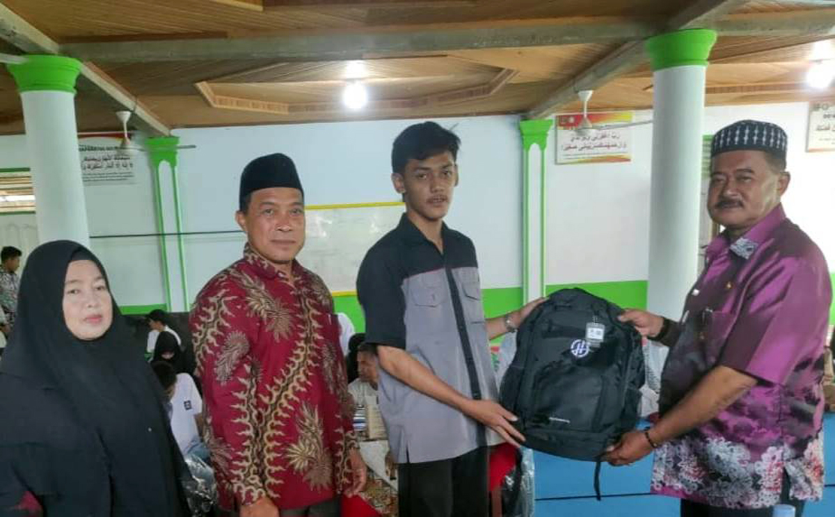 Deri Nofia mengapresiasi Dinas Pendidikan yang telah menyalurkan sebanyak 20 paket bantuan perlengkapan sekolah untuk murid yang Ia pimpin.