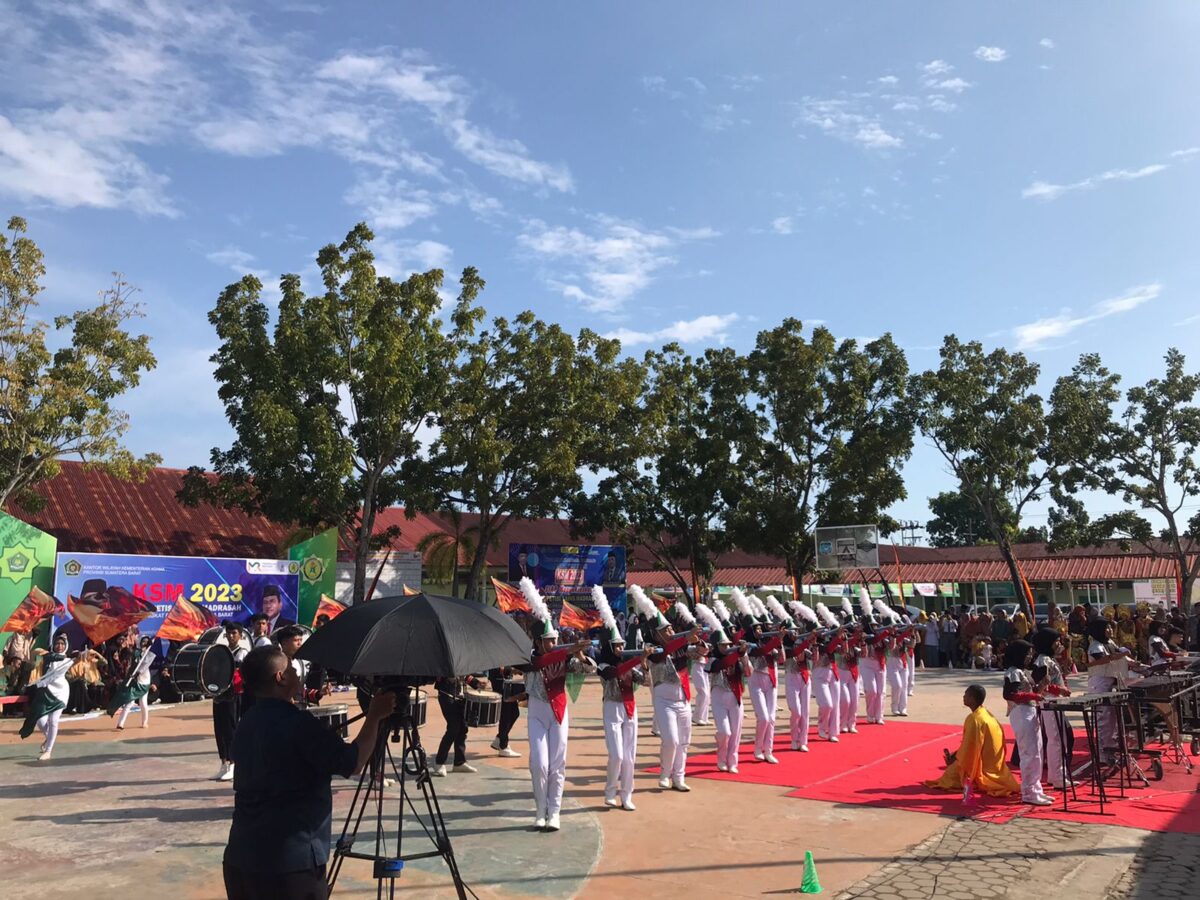 HARIANHALUAN.ID – Marching Band Madrasah Aliyah Negeri (MAN) 3 Padang tampil memeriahkan pembukaan Kompetisi Sains Madrasah ( KSM) tingkat Sumbar di MAN 2 Padang Jumat (4/8/23).