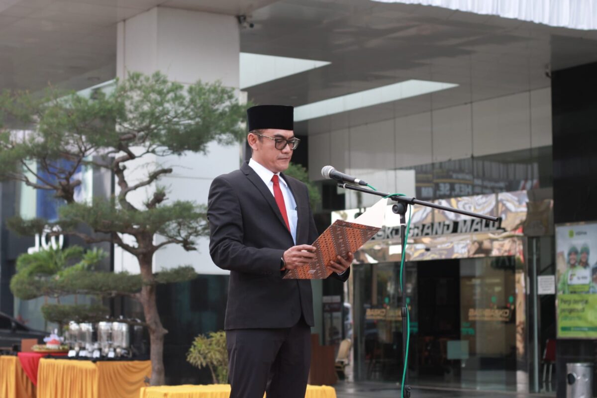 Direktur Pengawasan Mall dan Hotel Basko Group Robby Wiryawan saat memimpin upacara peringatan HUT RI, Kamis (17/8). IRHAM