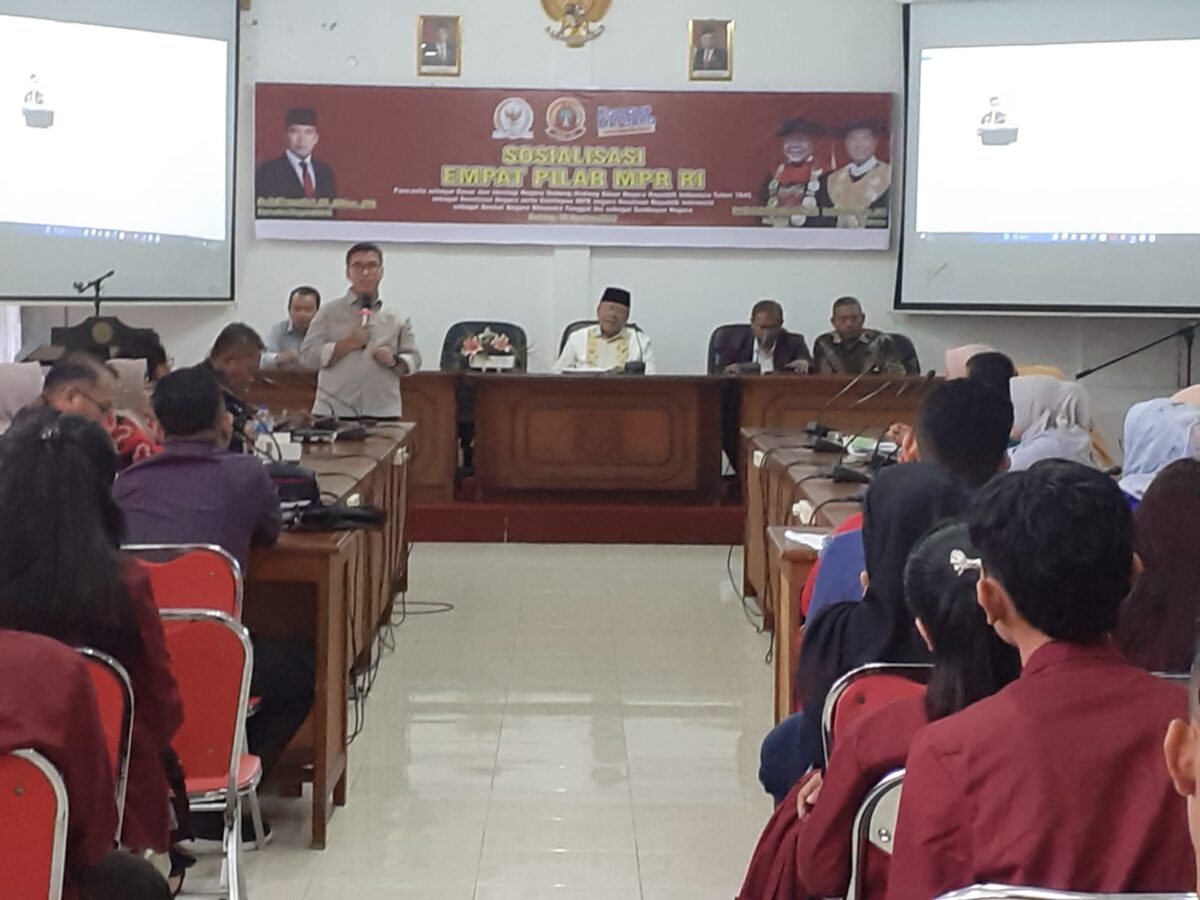 HARIANHALUAN.ID – Tingkatkan nasionalisme para mahasiswa, Universitas Eka Sakti (Unes) sosialisasikan empat pilar yang diselenggarakan di kampus, Sabtu (19/8). Pada kesempatan itu, turut dihadiri oleh seluruh civitas akademis Unes dengan menghadirkan Wakil Ketua Badan Sosialisasi MPR RI Alirman Sori sebagai narasumber.