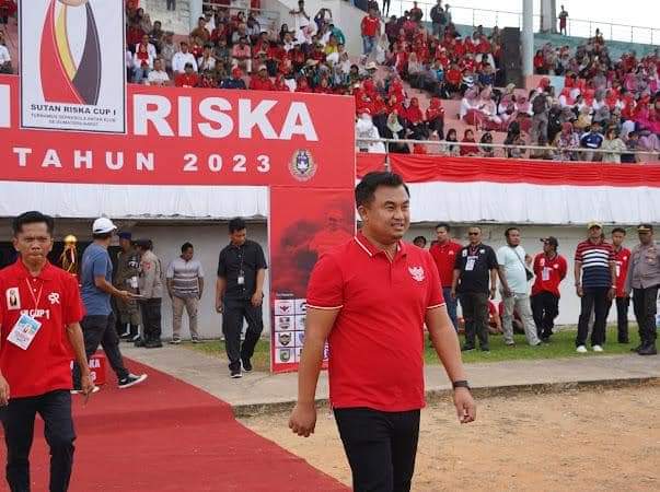 Bupati Dharmasraya Sutan Riska (kanan) dalam pembukaan Sutan Riska Cup 1. MARYADI