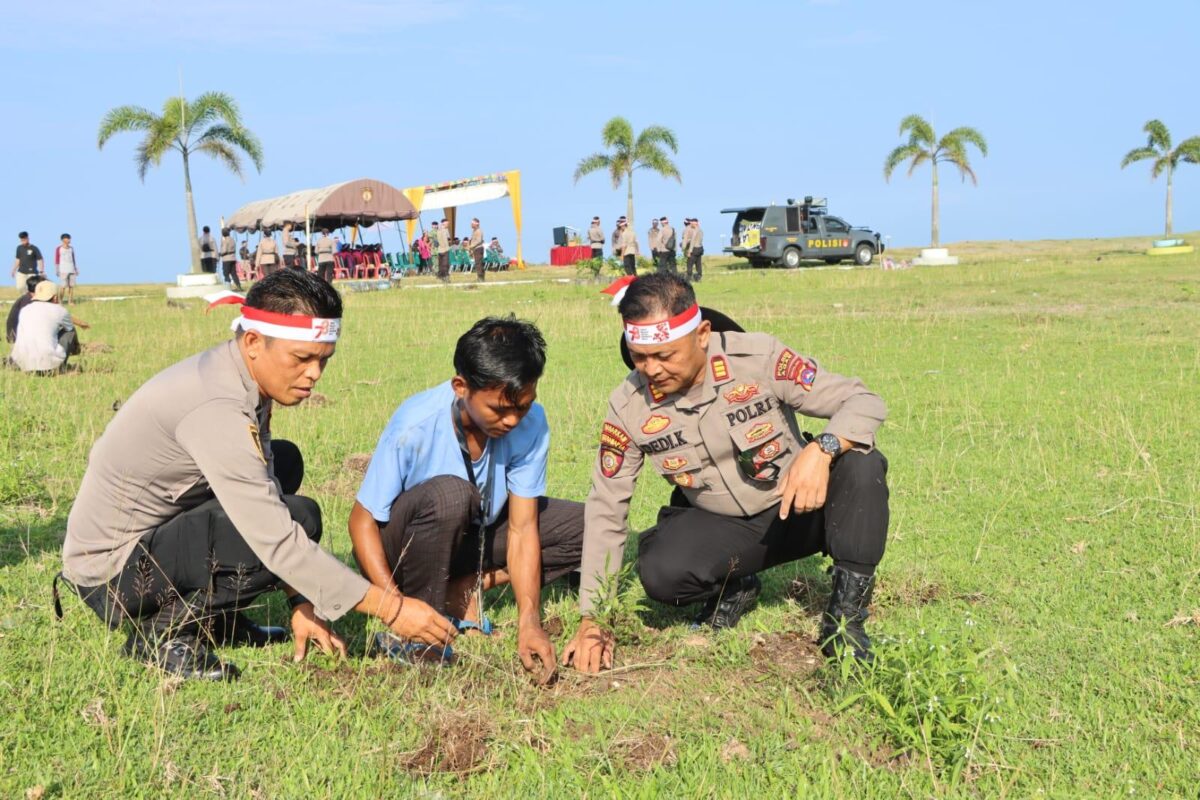 Penanaman seribu pohon itu dilakukan Polres Agam bersama Polsek Tanjung Mutiara yaitu di kawasan Pantai Tornado Jorong Ujuang Labuang Tiku Kecamatan Tanjung Mutiara.
