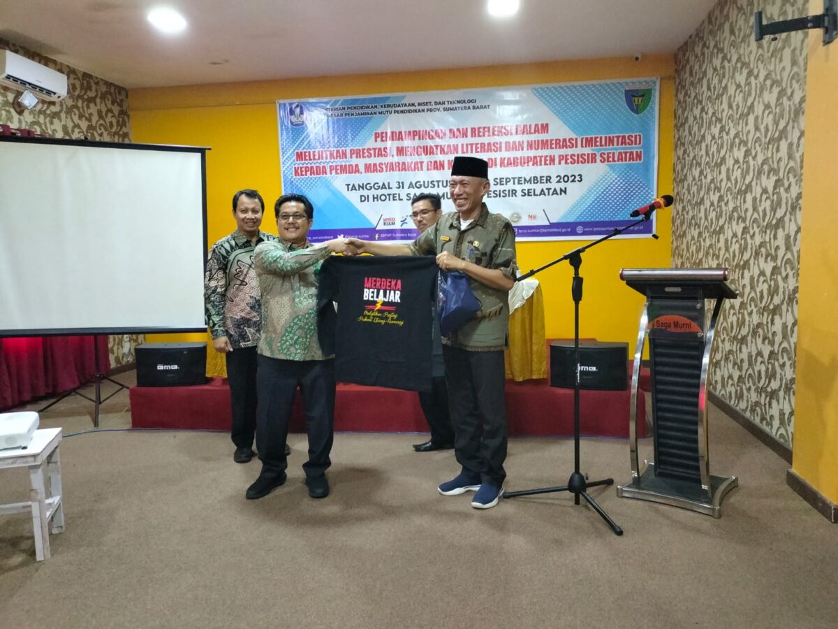 HARIANHALUAN.ID- Dalam rangka menyukseskan program merdeka belajar di Kabupaten Pesisir Selatan (Pessel) dimana Kementerian Pendidikan, Kebudayaan, Riset, danĀ Tekonologi melalui Balai Besar Penjamin Mutu Pendidikan Sumbar melaksanakan kegiatan pendampingan dan refleksi dalam mendukung upaya pemerintah dalam meningkatkan prestasi siswa melalui penguatan literasi dan numerasi (melintasi) kepada pemerintah daerah, masyarakat dan komunitas kelompok belajar di Pessel.