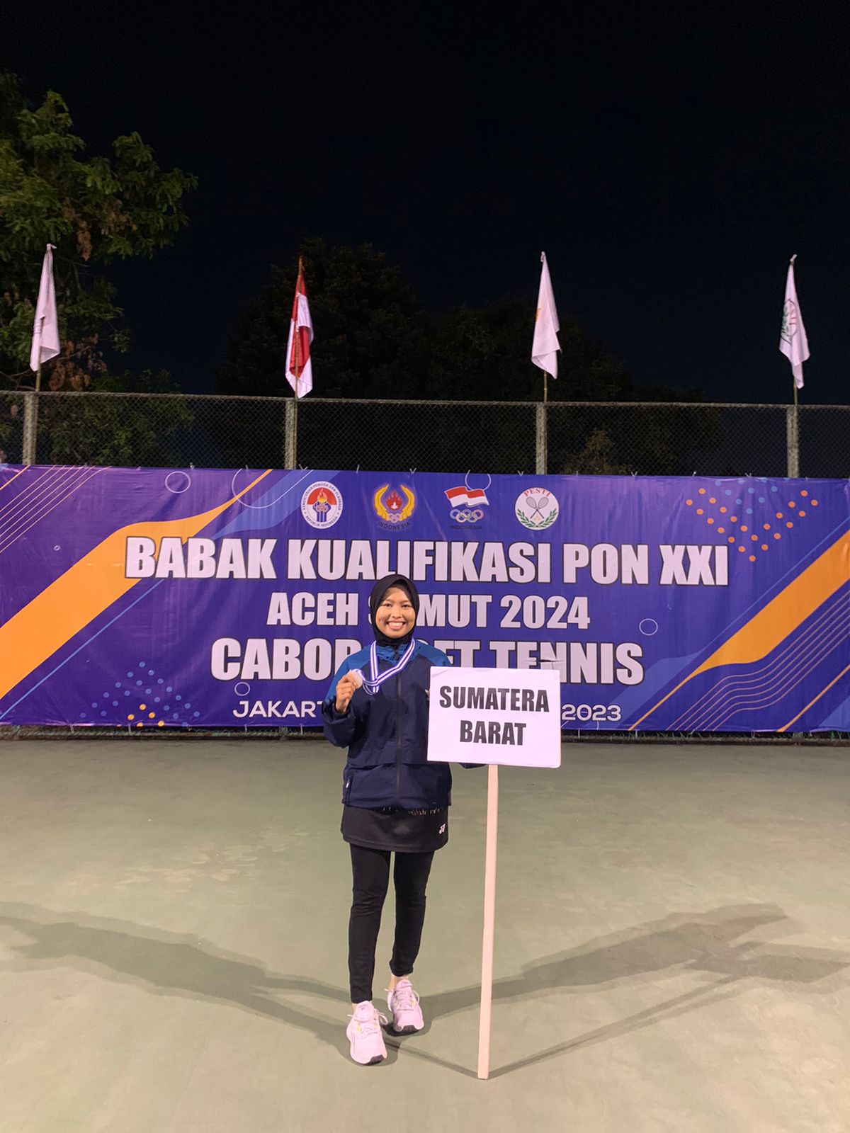 PADANG, HARIANHALUAN.ID—Fukratuz Zakiah (20), alet binaan Forum Komunikasi Karyawan Semen Padang Group (FKKSPG) berhasil meraih tiket PON XXI Aceh Sumut 2024 setelah menyabet medali perak pada babak kualifikasi (Pra) PON cabang olahraga Soft Tennis yang digelar di Jakarta, 21-26 Agustus 2023.