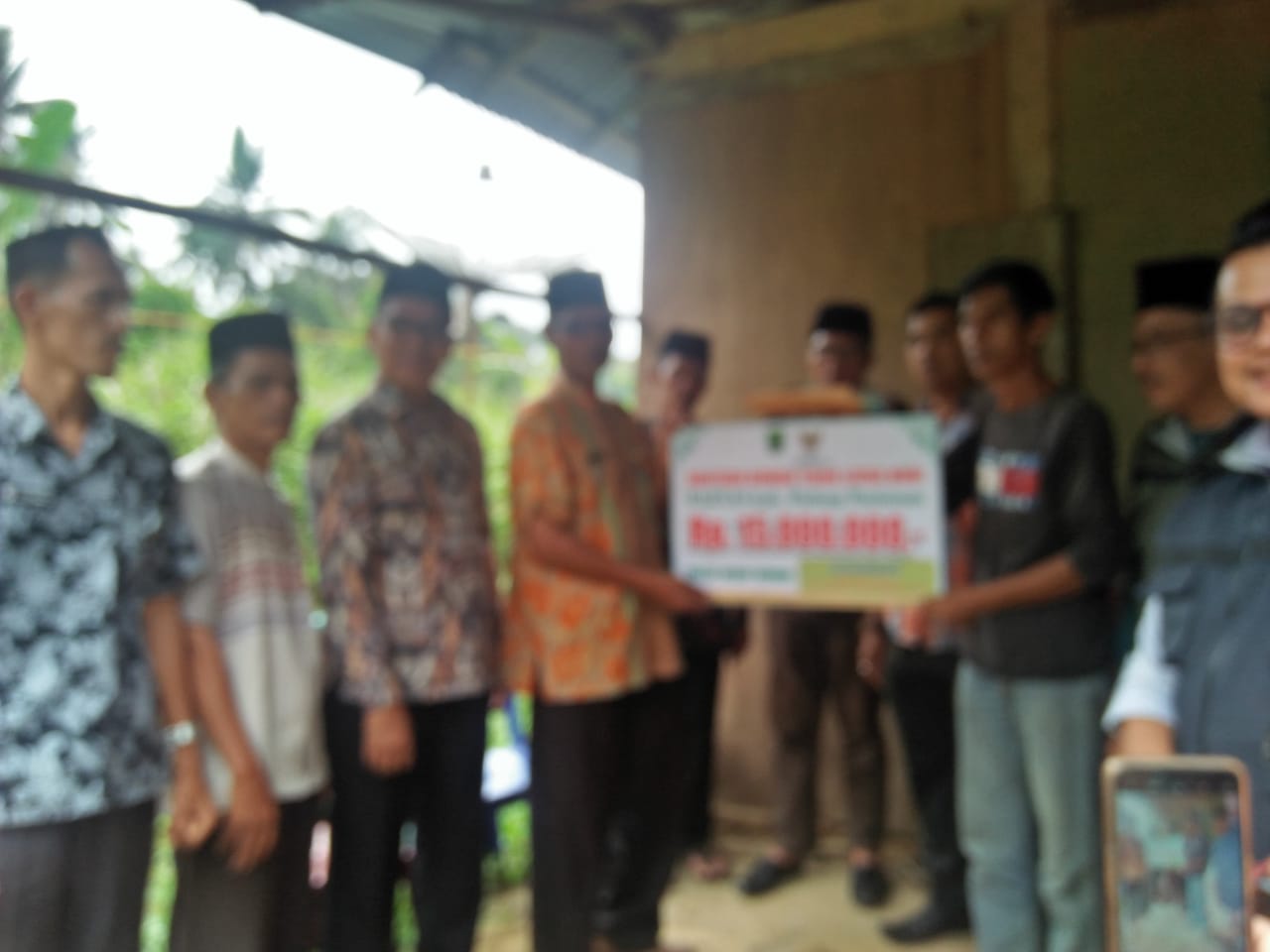PADANG PARIAMAN, HARIAN HALUAN.ID — Wakil Ketua Baznas Kabupaten Padang Pariaman Drs Zulfahmi, M.Pd, menyerahkan bantuan untuk pembangunan Rumah Tak Layak Huni.(RTLH) milik Sudirman, sebesar Rp15 juta.
