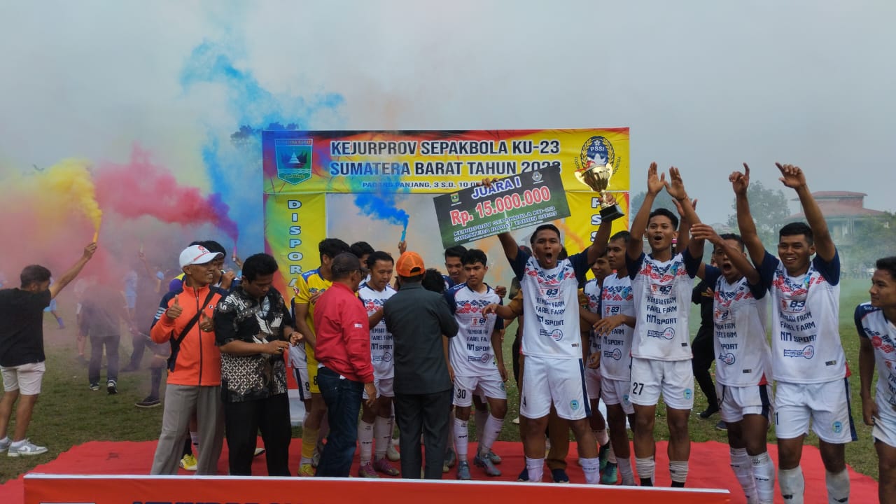 PADANG PANJANG.HARIANHALUAN.ID– Kesebelasan Persepak Payakumbuh FC, berhasil menjuarai Kejuaraan Provinsi (Kejurprov) Sepakbola Sumatra Barat U-23 usai menggulung tim Porwil Sumbar dengan skor telak 4-1 pada partai final yang berlangsung di Lapangan Sepakbola Gunuang Sejati, Kota Padang Panjang Selasa (10/10/2023) sore.
