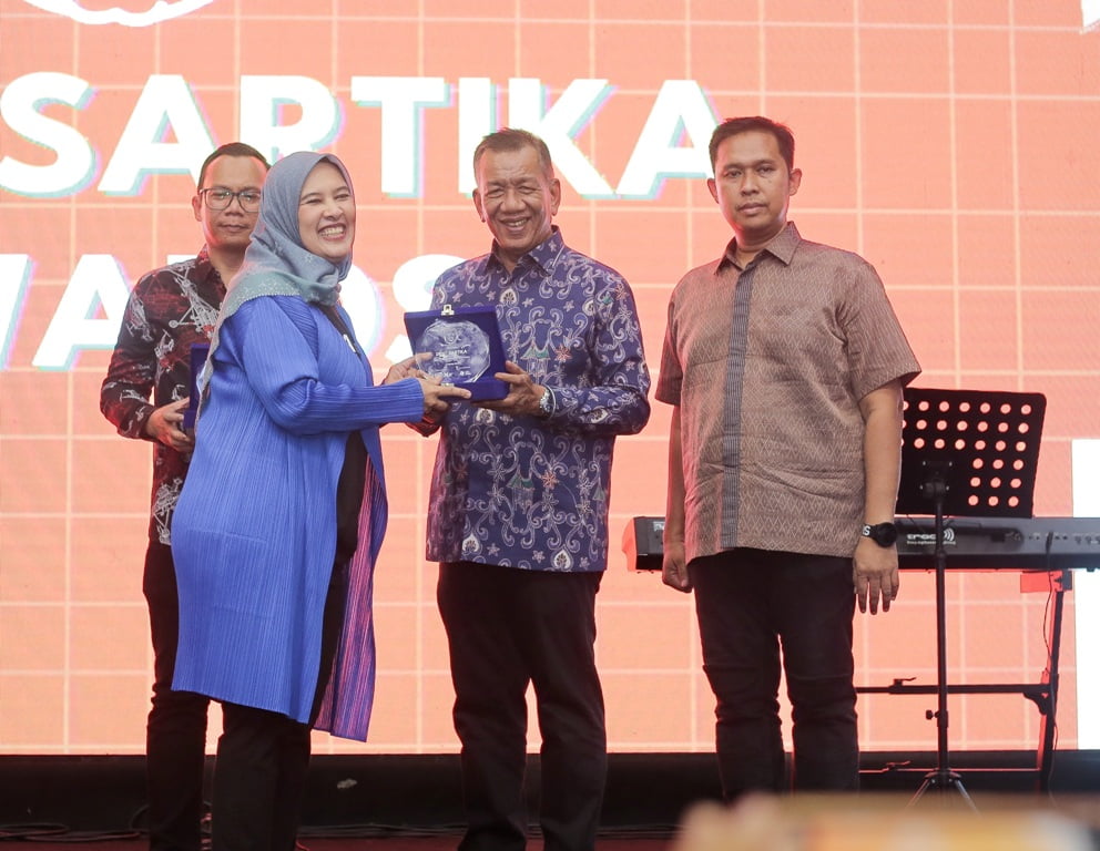 Bupati Pesisir Selatan, Rusma Yul Anwar, menerima anugerah Anugerah Dewi Sartika Awards pada perhelatan puncak Temu Pendidik Nusantara X di Basketball Hall, Gelora Bung Karno, Jakarta, Sabtu (21/10). IST/HUMAS