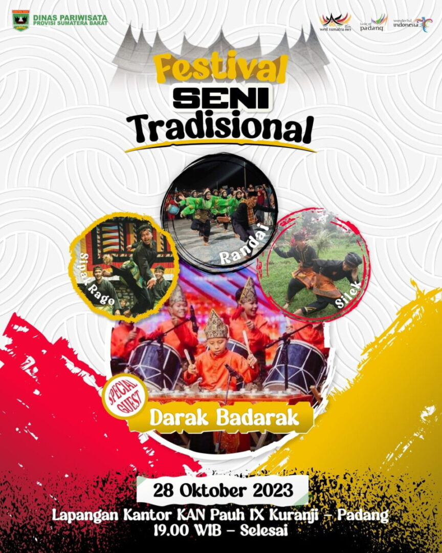 “Event terdekat adalah Festival Seni Tradisional yang akan digelar tanggal 28 Oktober 2023 nanti di Kota Padang. Acara itu akan menampilkan ragam seni pertunjukan khas Minangkabau,” ucapnya.