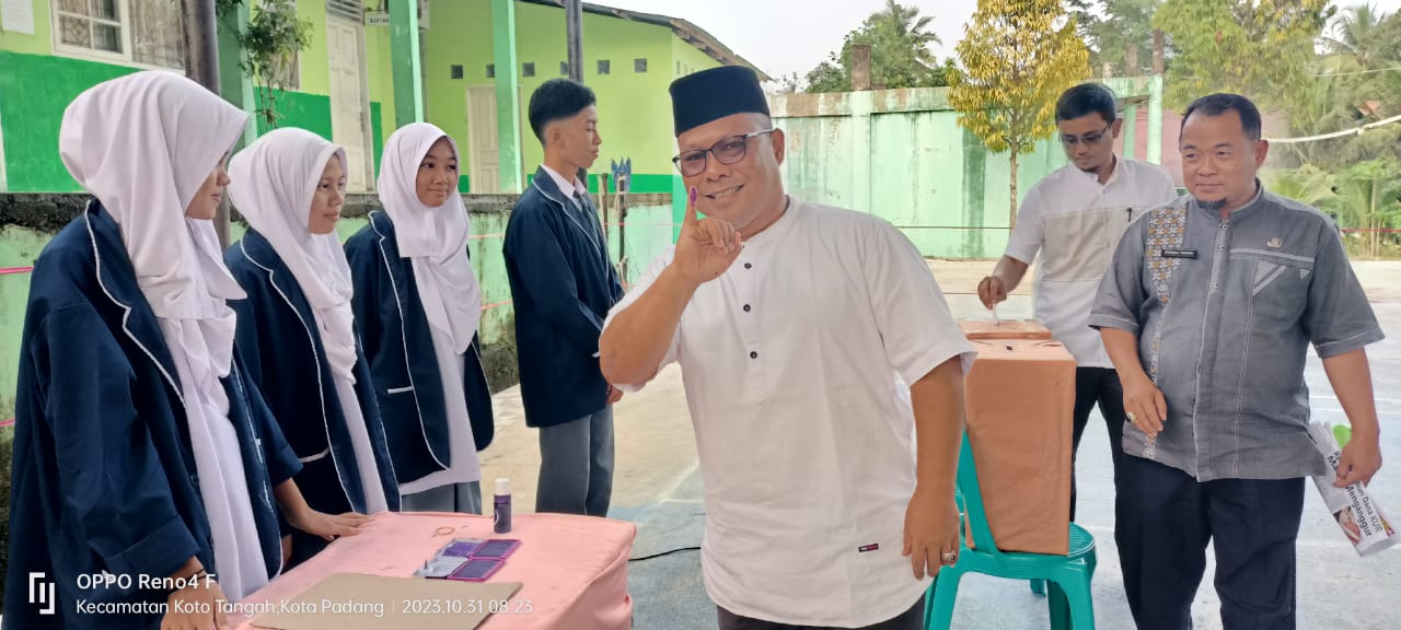 Kepala MAN 3 Padang Afrizal usai melakukan pencoblosan Pemilu Ketua OSIM. HUMAS